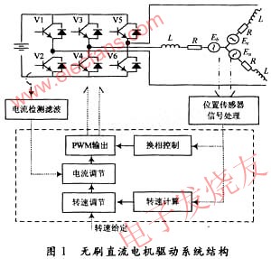 无刷直流电机定子绕组通常采用三相星形接法,需要应用三相全桥控制电路,其驱动控制系统结构如图1所示。