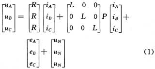 其中uA,uB,uC为相电压,e为各相绕组反电动势,i为流过各相绕组的电流,uN为三相绕组中点电压。L为三相绕组互感与自感的合成电感。
