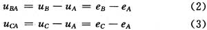 其中uBA和uCA为三相绕组的线电压。从式(2),式(3)中可以看到,在三相绕组开路的情况下,上面的两个量可以用反电动势表示。