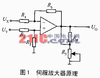 图2中,Uo为从伺服放大器来的电压信号,当Uo>0.7V时,电机正转;当Uo<-0.7V时,电机反转。C1为控制电机制动的电容。