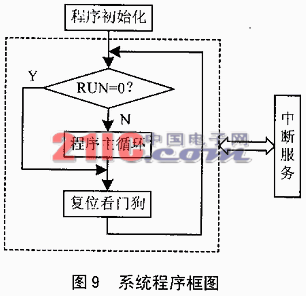 系统的抗干扰措施包括硬件措施和软件措施。硬件上:①在输入和输出通道采用光电隔离来进行信号传输,电机驱动电路上采用光电隔离器MOC3061,在上下位机通信电路上采用快速光隔6N137;②在每一个集成电路芯片都安置一个0.01μF的陶瓷电容,以消除大部分高频干扰;③模拟地与数字地分开;④在CPU抗干扰措施上,除了配置掉电保护电路外,还配置了人工复位和自动上电复位电路。软件上:①指令冗余,在一些双字节和三字节指令之后插入两条NOP指令,以保证跑飞的程序迅速纳入正确的控制轨道;②利用软件陷阱强行将捕获到的程序引向对程序出错处理的程序;③启用80C196KC内部监视定时器(watchdogtimer);④对A/D输入信号采取软件数字滤波。