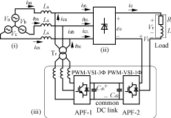 提出了直流有源电力滤波器与负载主电路并联联结的1kVA试验电源装置,如图5所示。该系统采用检测纹波电流的控制方法,直流有源电力滤波器不但用于消除负载电流纹波,而且还可用于补偿输出电流脉冲的跟踪误差。试验结果表明,该直流有源电力滤波器能够使负载纹波电流衰减到1/100。