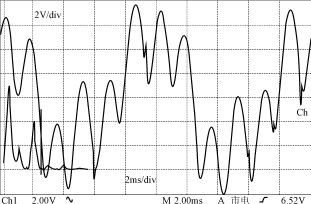 针对实际工业应用的一台12脉波、120kW大功率高精度直流稳定/脉冲电源,笔者设计制作了一台直流有源电力滤波器,电路系统结构如图7所示。图8、图9分别是直流有源电力滤波器投入前、后负载两端纹波电压的波形。该电源某一工况时有源电力滤波器投入前、后的谐波电压各分量实测值。从图8、图9和表1可以清楚地看出直流有源电力滤波器抑制谐波的效果非常好,特别是抑制低次谐波的能力较强,而这些谐波的含量恰恰在负载纹波电流中占主导地位。经测量谐波电压值,用间接法计算,其负载电流纹波系数峰?峰值小于1×10-5。
