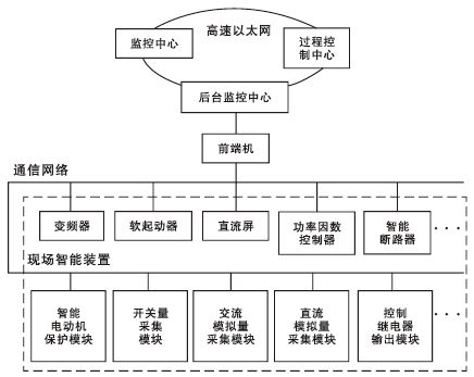 (3)现场智能装置。现场智能装置完成低压开关的开关量采集(遥信)、模拟量采集(遥测)、开关操作(遥控)、开关保护、电动机保护等功能,以及电量采集和开关分合位置的开关量采集(遥信)等。