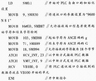由于远程PLC采用的是自由口用户通讯协议,所以对PLC的自由口通讯必须做如下初始化设置: