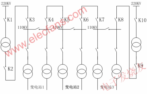 如下图1结构。K1"K4,K6"K10闭合,K5断开,假设左侧220kV变电站停电,变电站1内的备自投无法控制K5,导致变电站1,左侧220kV变电站全站停电。如何解决这一问题,即检测、判断故障,通过何种方式传递、变换站间信息,以便隔离故障,提高供电可靠性,一直是一个难题。