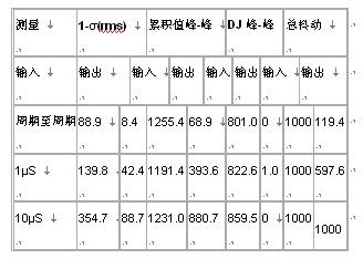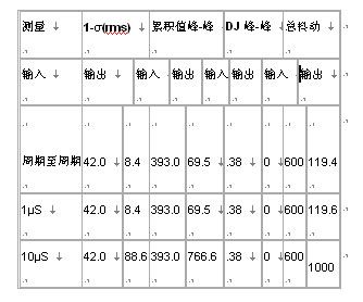 从以上的表格可见在最小抖动注入为42psRMS的情况下实现了8.4psRMS的BAJA噪声层在标准的实验室试验条件下周期至周期抖动至少降低了4倍而且长期测量结果显示时间间隔为1s时抖动至少衰减4倍而在时间间隔为10s的极端条件下的抖动衰减倍数为2不包括表4。