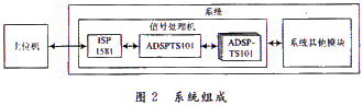 图2为本文所论及的信号处理系统的结构框图。在本系统中,上位机将设置好的参数发送给信号处理机,由信号处理机将参数转发给系统其他模块,并根据此参数进行相应的信号处理,最后再将处理结果传回上位机。
