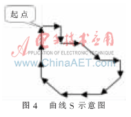 一条边界曲线可以由曲线的起始点和该曲线的链码唯一确定。假设曲线S如图4所示,其链码由数组Lianma[]表示。