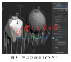 有针对性地为场景中面数复杂的装置建立多个不同的模型,使场景在显示的时候以不同模型多方面显示,如图3所示。最简单的是建立简单和细化两种模型,当视点距对象较远时采用简单模型,视点接近时自动切换为该对象的细化模型。采用这种办法,需对某对象建立多个模型,并利用Switch、LOD节点或触发器实现模型的切换。在切换过程中,要对切换时间进行设置,使切换时间小于人眼眨动频率,画面看起来更加逼真。这种方法既能够减小面数、提高演示速度,又能够使人感觉不到明显的切换痕迹,是虚拟现实领域应该继续沿用并加以延伸的方法。