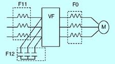 必须注意,在变频器的输出端不允许接入电容器,以免在逆变管导通(或关断)瞬间,产生峰值很大的充电(或放电)电流,损坏逆变管。