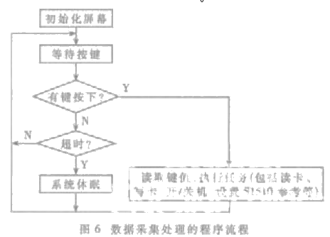 当指定时间内没有键按下, 系统则进入休眠状态, 从而达到省电的目的。程序流程图如图6。