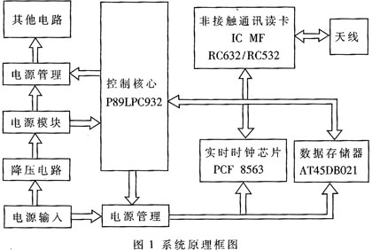 系统主要由核心控制单元MCU P89LPC932、与Mi-fare One卡通讯的MF RC632、与PC机通讯的RS232、提供时间基准的实时时钟芯片PCF8563和存储系统设置数据的存储器AT45DB021组成。整个系统所用的器件都是比较常用的器件,具有典型性和通用性。此外,在系统方案设计中,将整个系统分为主站和基站,而主站和基站的硬件和软件均无区别只是设置不同。因此只要在设备安装后通过PC机就可设置其权限,易于安装、调试、维修和扩展。