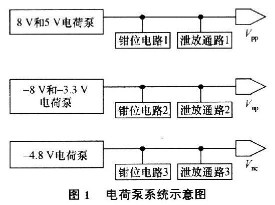 电子可擦除可编程存储器(electrically-erasableprogrammable read-only memory,EEPROM)和快闪存储器在编程和擦除操作时都需要高压,因此电荷泵电路在单电源的嵌入式存储器芯片中扮演着极其重要的作用,其功耗,面积和在低电源电压下的工作能力等直接影响到整个存储芯片的性能。而且在实际应用中,一个存储器芯片内部一般会需要不止一种正高压和负高压,所以系统中会需要多个正高压电荷泵和负高压电荷泵,这使得电荷泵所占芯片面积超过整个存储器芯片中外围电路的一半。对于采用带带隧穿热电子注入(band-to-bandtunneling induced hot electron,BBHE)进行编程的p沟道DINOR(p-channeldivided bit-line NOR)结构的快闪存储器,它需要至少一个正高压电荷泵和两个负高压电荷泵。对于采用源极诱导带带隧穿热电子注入(source induced band-to-band hotelectron_,SIBE)方式进行编程的新型快闪存储器,系统总共需要2个正高压电荷泵和3个负高压电荷泵。