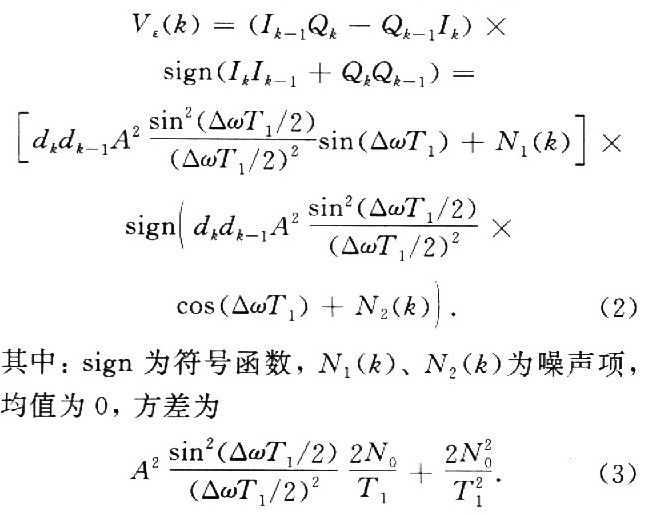 其中N3(k)为噪声项。鉴相器输出相差估值控制本地载波NCO,调整本地载波相位,跟踪输入信号载波相位的变化。