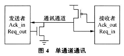 图4给出了基于单通道异步握手协议通讯通道结构,