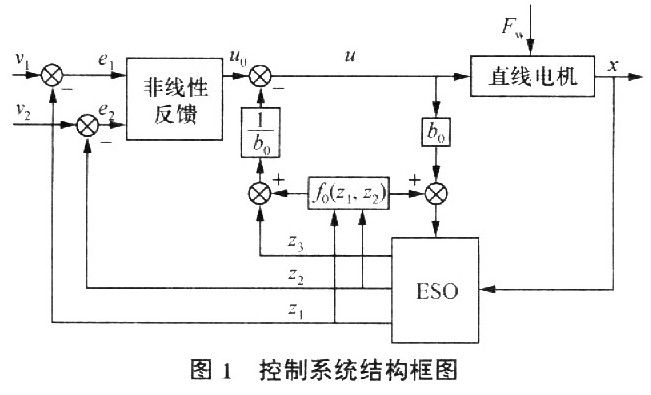 典型的自抗扰控制器包括跟踪微分器(trackingdifferential,TD)、扩张状态观测器(extended stateobserveF,ESO)和非线性反馈控制器3部分。n阶TD的作用是给出不可微输入信号的跟踪信号及其l至n-l阶微分信号。TD产生的信号相对于输入信号有少许滞后,此外,非圆零件截面形状一般用可微函数表示,直接对该函数求导就可以获得参考信号的微分值。因此,本控制器去掉了TD环节。。ESO可实时估测出被控对象的各阶状态变量和系统的总扰动中的未知部分(包括内扰和外扰),并给予补偿。非线性反馈控制器将TD的输出信号与由ESO观测到的相对应的状态变量作差后,经过非线性组合,产生未包含扰动在内的控制量,达到提高系统的快速性,减小超调量的目的。