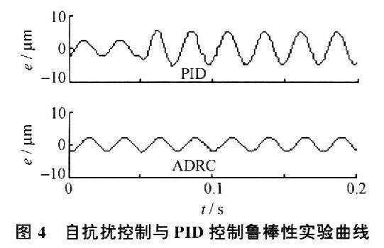 从图4可见,增益减小50%后,PID控制的误差范围有了较为明显的变化,而自抗扰控制的跟踪效果几乎没有受到任何影响。这个试验充分反映了自抗扰控制对被控对象模型不依赖的特性,其鲁棒性强于PID控制。