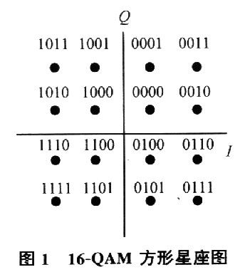 目前,许多不同的星座已经被采用,对于高斯信道,图1的方形星座是最优的,相对于星形星座,在同样的平均信号功率的下,方形星座的平均最小距离比星形星座大20%。