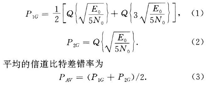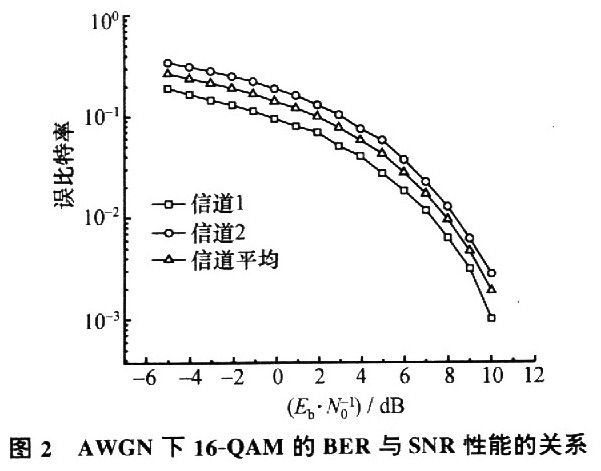 其中:d为信号点最小距离;No/2为双边功率谱密度;Q函数为为平均的信号点能量。图2给出了AWGN信道下,16-QAM的C1和C2的误比特率P1G、P2G与Eo/No关系的实验模拟结果。