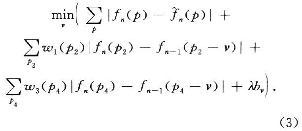 其中:第1项是当前块的预测误差的绝对误差和;第2、3项反映了对右边和下边块的预测误差影响;第4项中bv为对运动矢量的编码所需的速率。