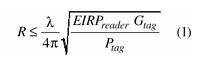 其中,EIRP=有效各向同性辐射功率、Ptag=标签天线输出所要求的功率、Gtag=标签天线增益、λ=射频载波的自由空间波长。