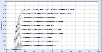 图4是控制器在不同压力设定值下的响应曲线。因为系统漏气或者用户使用气压的缘故,伴随设定值的增加,压力波动值增大,达到稳态的时间会变长。