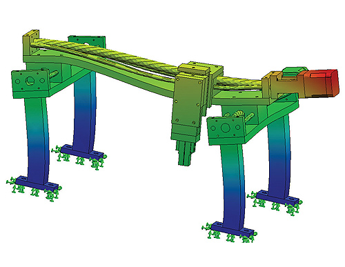 使用SolidWorks集成的仿真套件,我们可以从运动分析中取出力与转矩,并将其放入结构仿真中来评估机械强度,耐久性以及柔韧性。现在,机械工程师可以回答有关机械性能的基本问题了。在任何运行速度下机械是否会共振?机械是否超出设计标准?我们是否能减少机械的重量以及由此导致的花费?机械部件的使用寿命是多久?这不是只做一次的仿真,而是当机械开发时,不断运行以发展与改进,不断为机电一体化团队提供最新、精确的信息,以根据具体情况作出设计决定。我们现在完全参与设计迭代循环,对于一个好的设计来说,“如果出现情况怎么办”可以被提高为“没问题”的设计。