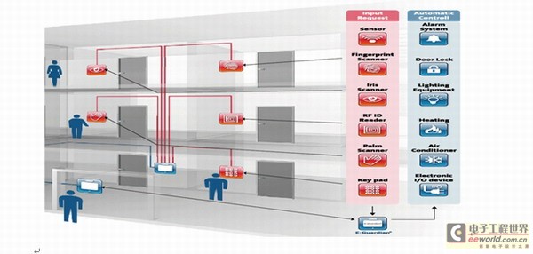 图1:基于生物认证技术的大楼管理系统示意图。