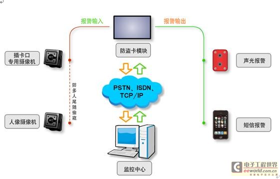 此款防盗卡模块安装于远拓科技的监控系统整体示意图如下: