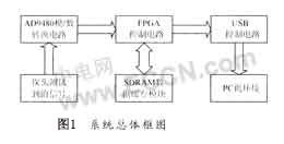 从整体上看结构可分为2个部分:高速数据采集模块的设计;USB 2.O高速数据传输系统。