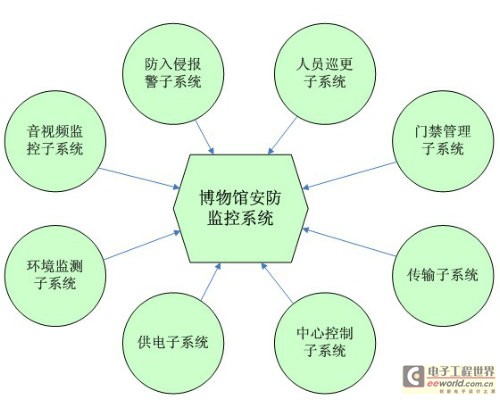 而从博物馆安防监控系统的实际需求来看,整个系统应包括音视频监控子系统、防入侵报警子系统、人员巡更子系统、门禁管理子系统、传输子系统、中心控制子系统、供电子系统、环境监测子系统等。