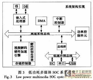 在多媒体SOC中,为了保证服务质量,系统的设计目标必须是面向最高负载情况。然而在实际运行过程中,视频解码器、中央处理器以及一些外设经常处于不活动或者低负载状态,这无疑白白消耗了一些能量。为解决该问题,EDA公司对Multi-Vt以及Muhi-Vdd等低功耗设计技术提供更有力的支持,IP供应商对同一IP核也提供了丰富配置以满足不同应用需求,同时Foundry也提供了更丰富的标准单元库以及工艺。在进行低功耗多媒体SOC设计的过程中,设计者所要做的就是充分利用这些技术优势,尽可能地去开发可利用的低功耗设计空间。