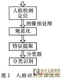 人脸检测系统可以分为人脸检测和人脸识别模块,这两大模块又进一步可划分为人脸检测与定位、规范化、特征提取和人脸识别4个模块。其详细结构,如图1所示。