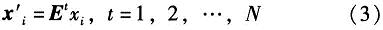 假设取出p个值,λ1,λ2,…,λp可以确定出脸空间E=(e1,e2,…,eP),在此脸空间上,训练样本X中,每个元素投影到该空间的点可以由式(3)得到