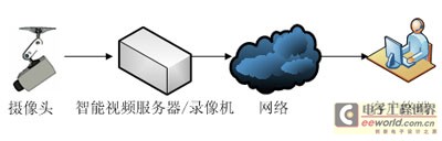 方式1:通过对ATM监控系统中的摄像机加载智能视频处理模块,形成智能视频处理摄像机。这样在不改变传统ATM监控系统连接方式的前提下,智能视频处理摄像机能够对其捕获的视频数据进行智能分析处理。