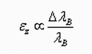 在所有引起光栅Bragg波长移位的外界因素中,最直接的是应力、应变参量。因为无论是对光栅进行拉伸或挤压,都将导致光栅周期∧的变化,并且光纤本身所具有的弹光效应,使得有效折射率也随着外界应力状态的变化而改变。据此,可用光纤Bragg光栅制成灵敏的光纤传感器。其中,应力引起光栅Bragg波长的移位可以由下式统一描述