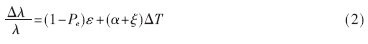 光纤光栅应力传感器通常是将光纤光栅附着在某一弹性体上,同时进行保护封装。当弹性体受到压力时,光纤光栅与弹性体一起发生应变,导致光纤光栅的谐振波长漂移,漂移量由式(2)给出: