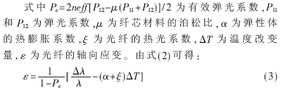 从式(3)可以看出,如果已知光纤光栅谐振波长的漂移量以及其工作温度的改变量,就可以计算出光纤光栅的应变。