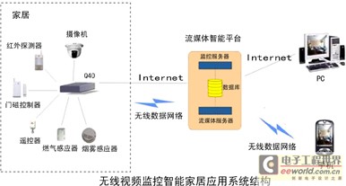 本方案立足以互联网、宽带ADSL应用方案,HKJ-Q4000A1网络视频服务器,可云台控制,外观精致、小巧灵活,最后通过家庭ADSL带宽将视频传输互联网,远端用户可以通管理软件直接观看家中情况。而且还可以远程通过手机监控家中的情况。