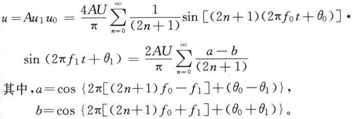 设接收信号为u1=Usin(2πf1t+π),设正相和反相放大电路的放大倍数为A,则通过检波电路之后的信号u的表达式为: