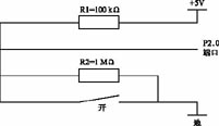 在微波成像系统中,为了防止电机的失步,保证天线扫描场景与PC机所成图像场景一致必须在单片机上外加定位电路,使得天线扫描一周后能够确定天线的零位,在天线的转台上安装一个撞针,并接单片机的P2.0端口,平时保持开路状态,P2.0端口保持高电平,当天线旋转至零位时,撞针与地线接触,发生短路,P2.0端口电平变为0V,单片机检测到电平发生跳变,使单片机产生中断信号,由此判定天线是否到零位。等效电路如图3所示。