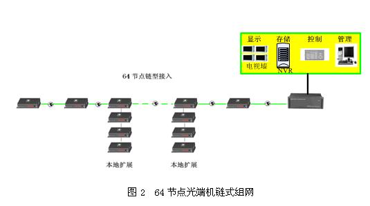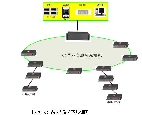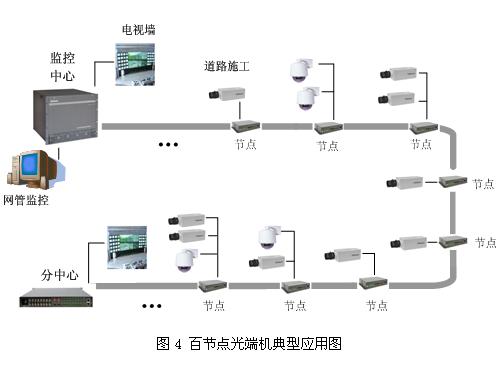 N3795百节点光端机采用冗余环状拓扑结构,支持环型、环切环、链型、星形等多种拓扑结构,每个环路最多可接入100个前端接入节点设备,每个节点设备可接入1-4路视频带二路双向数据和二路反向数据,中心交换设备可切换输出128路视频,数据通道数可根据客户需要任意配置。节点设备通过扩展设备,可接入4个扩展单元,扩展单元允许1-4路视频接入,2路双向数据,因此每个节点最大接入能力为20视频和8路双向数据。