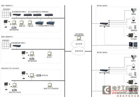 根据监狱的应用特点及管理模式,系统采用了“分散控制、集中管理”的两级管理架构,分为监狱监控总指挥中心(一级监控中心)和值班室二级监控中心,增强了系统的稳定性、安全性和易扩展性。