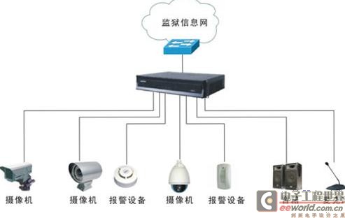 监狱的前端监控部分安装在监狱内的围墙、出入口、建筑、监舍及其他重要控制区域,由模拟摄像机、话筒、音箱,各类声光、烟感、红外报警设备、编码器组成。