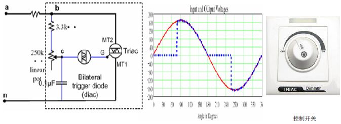 改变可变电阻的分压比就可以改变其导通角,从而实现改变其有效值的目的。通常这个电位器带一个开关,接在n 的输入端,用于开关灯。除了可控硅以外,还有晶体管后沿调光技术等等,因为它们的基本问题是相同的,就不在此介绍了。