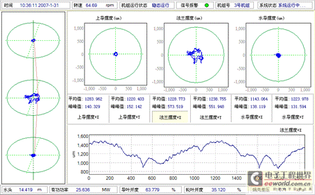 水电发电机组状态监测综合分析系统的设计构思,是通过实用而有效的功能定位和开放式的构成体系,分步、分块有计划逐步实现机组全状态监测的蓝图。系统在功能上突出了监测、查询和分析三部分,其中监测部分包括主监视图、振动波形图、振动棒图、轴心轨迹图、效率曲线等,以2~5s的速度即时刷新。功能介绍如下: