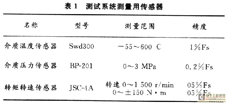 为了精确的完成各类数据的测量,完成各个环节的测试,装置中设置了五个参数测量传感器(包括三路温度传感器),其精度满足GB/T17469-98中所规定的要求。其具体参数见表1。