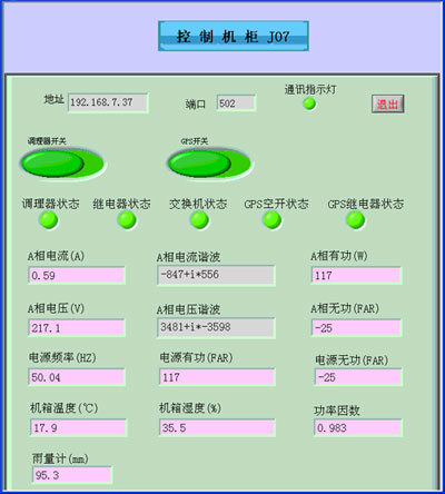 软件平台采用可视性强、界面丰富的NI LabVIEW平台和数据分析技术,采用标准的数据接口。电力监测软件为用户提供一个可视化的监测界面,让用户直观、方便、快捷地了解现场传感器、UPS、磁弹仪、采集器的运行状态,并根据数据分析的结果进行运行状态的调整和负荷的控制。用户通过查询历史数据库,可以调出电力设备的历史运行状态曲线,并完成上位机对应的数据管理功能。界面如图6所示。