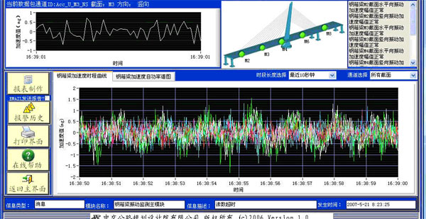从技术角度去讲,NI CompactRIO系统和LabVIEW开发环境无缝连接使用户轻松的通过图形化开发环境访问底层硬件,快速建立嵌入式系统控制和数据采集应用,大大降低了系统开发、 生产的技术风险。LabVIEW 强大的数据采集和信号处理功能极大地节省了采集终端软件的开发时间,在LabVIEW RT和LabVIEW FPGA模块的配合下使得采集终端能够实时高质量地完成数据采集、信号处理、数据传送和数据存储的工作,为整个大桥结构安全监测系统提供灵活、强大的底层数据支持。